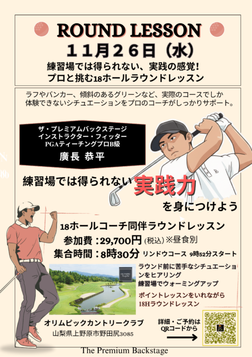 インドアでは得られない、実践の感覚!プロと挑む18ホールラウンドレッスン